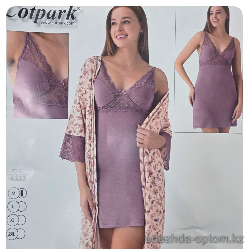 b4-16225 Cotpark Сорочка женская в комплекте с халатом, M-2XL, 1 пачка (4 шт)