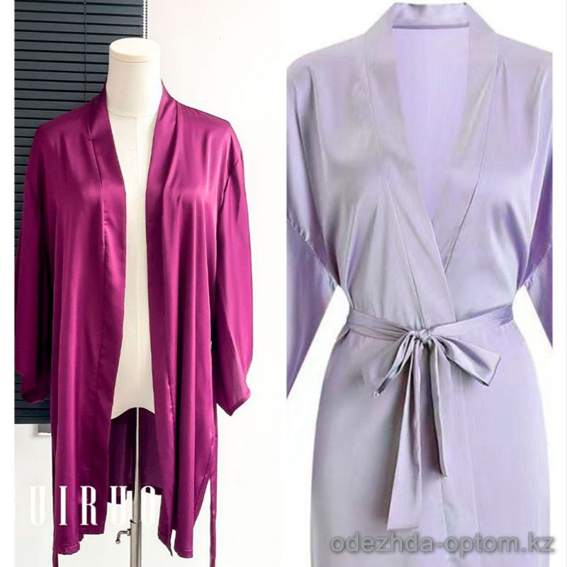 b4-1690 Халат женский шелковый с длинным рукавом, стандарт (L/XL), 1 шт