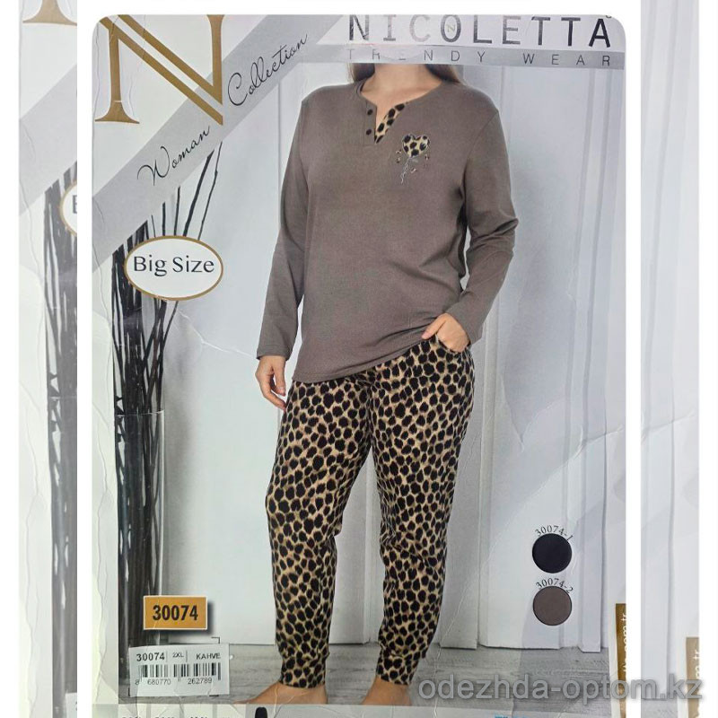 b4-30074 Nicoletta Комплект женской пижамы: кофта и штаны, большие размеры, 2XL-5XL, 1 пачка (4 шт)
