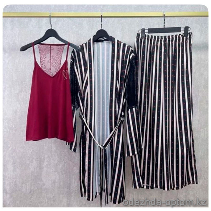 b4-53000 Комплект женской пижамы 3в1: халат, майка и штаны, стандарт, 1 шт