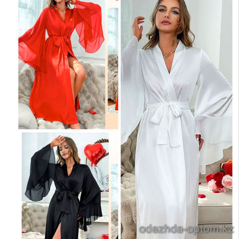 b4-8001-2 Халат женский шелковый длинный, 1 шт