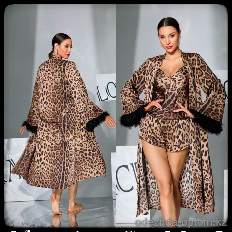 b5-1167-1 Комплект женской одежды для сна 3в1: халат, майка и шорты, S-L, 1 пачка (3 шт)