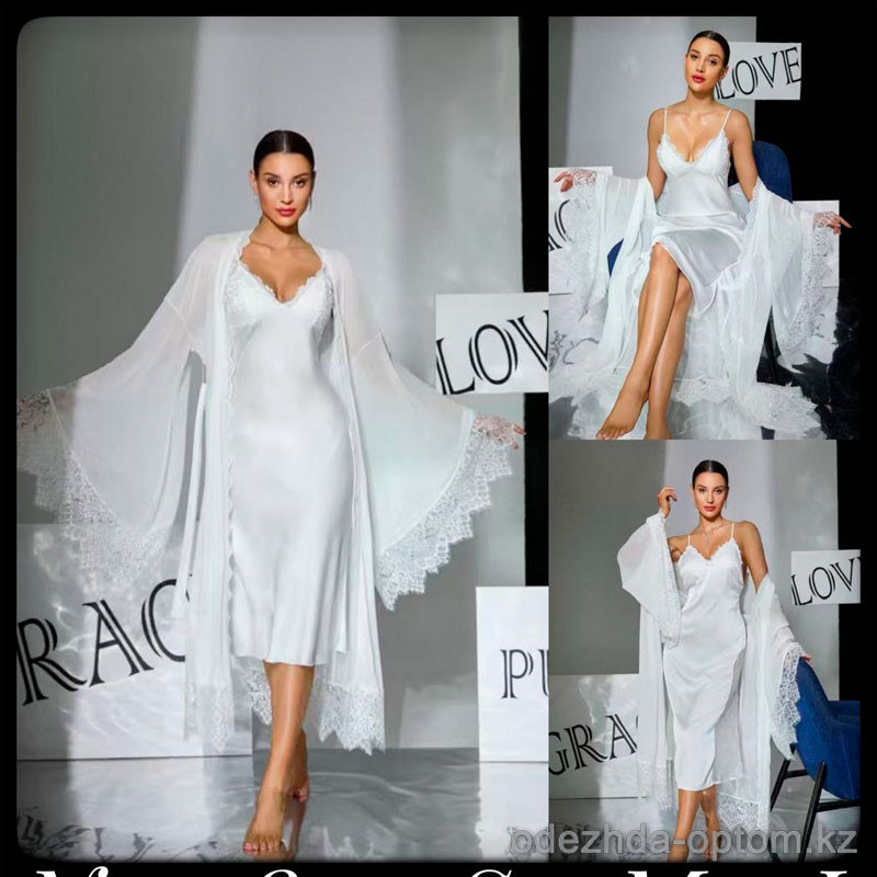 b5-1182 Халат женский длинный в комплекте с сорочкой, S-L, 1 пачка (3 шт)