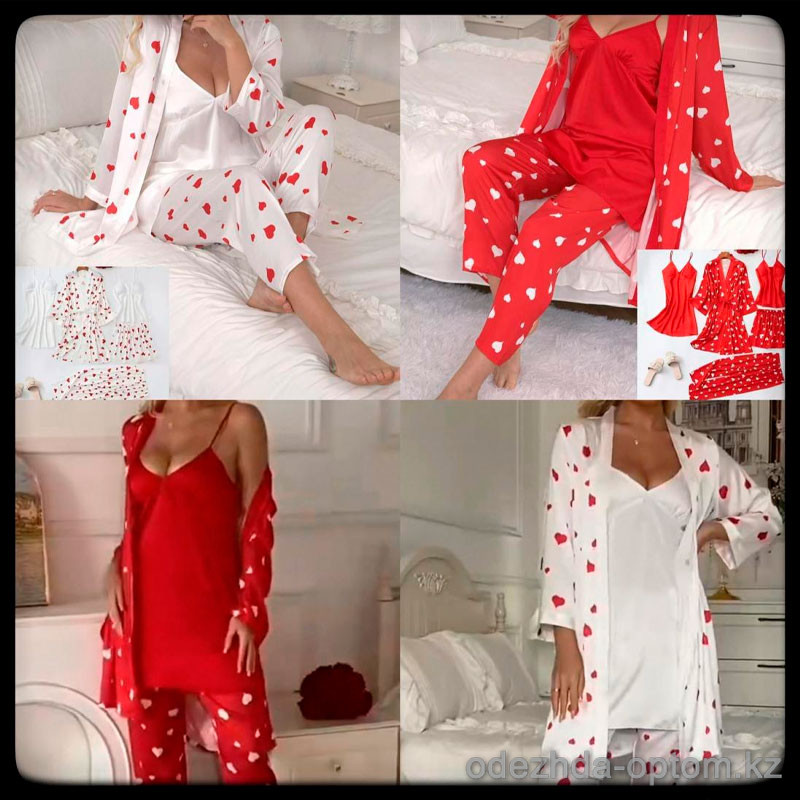 b5-51088 Комплект женской пижамы 5в1 (халат, шортики, сорочка, топ и брюки), M-XL, 1 пачка (3 шт)
