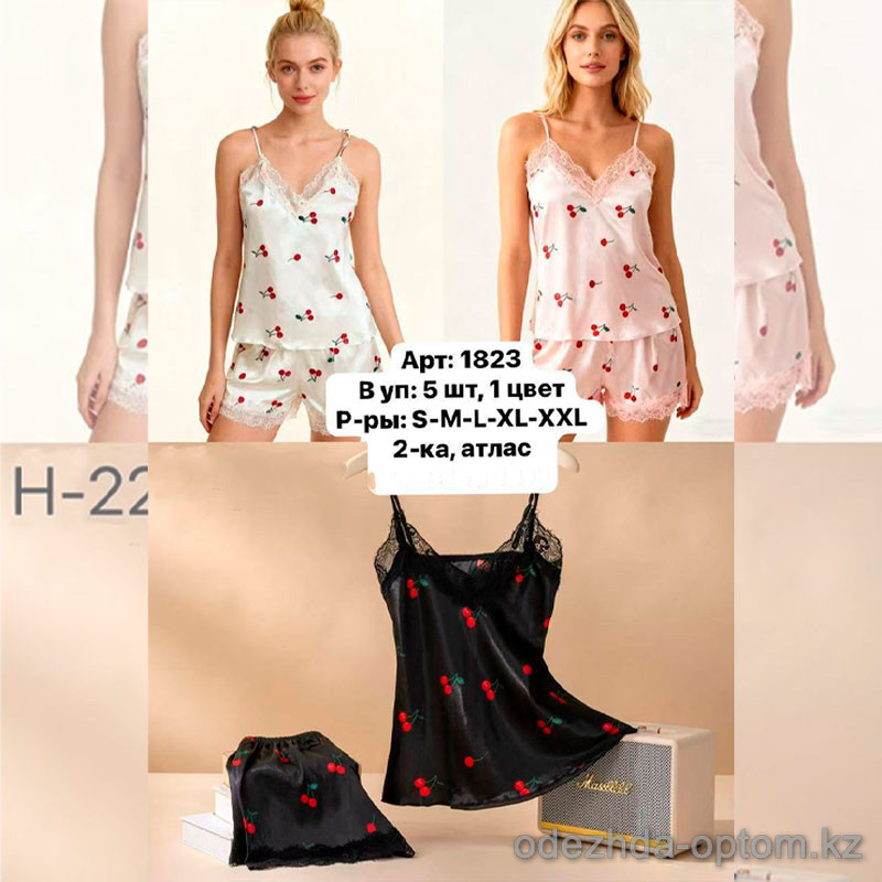 b6-1823-2 Комплект женской атласной пижамы: майка и шорты, S-2XL, 1 пачка (5 шт)