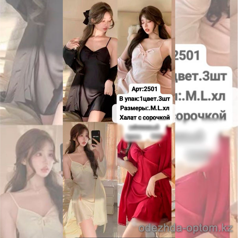 b6-2501-1 Сорочка женская шелковая в комплекте с халатом, M-XL, 1 пачка (3 шт)