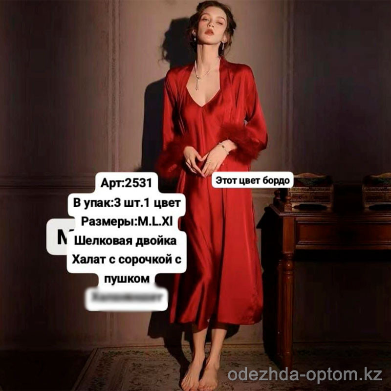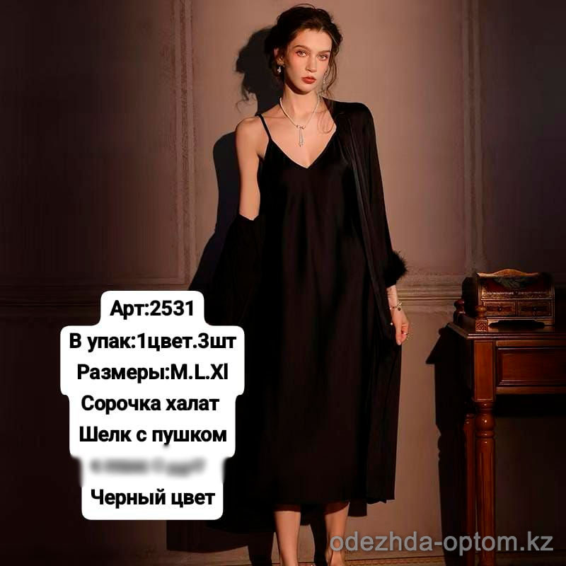 b6-2531-1 Сорочка женская шелковая в комплекте с халатом, M-XL, 1 пачка (3 шт)