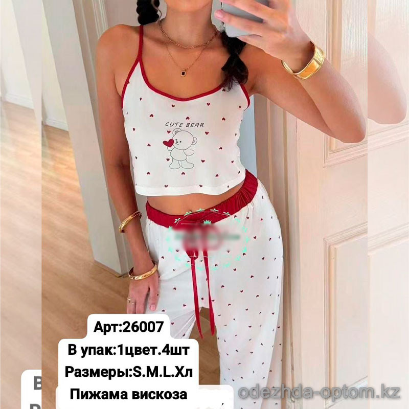 b6-26007 Комплект женской пижамы: майка и штаны, S-XL, 1 пачка (4 шт)