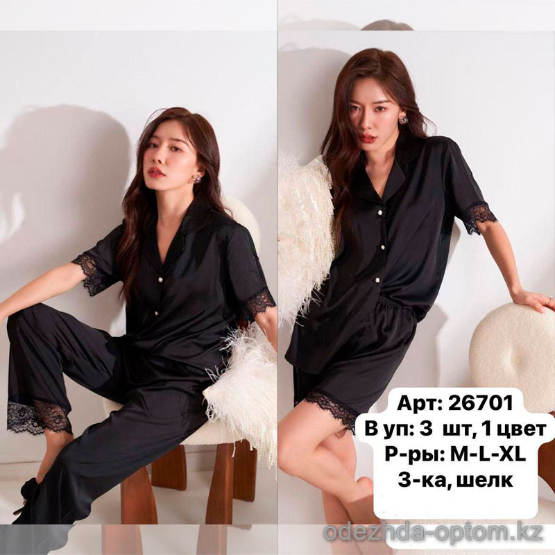 b6-26701 Комплект женской шелковой пижамы 3в1: рубашка, штаны и шорты, M-XL, 1 пачка (3 шт)