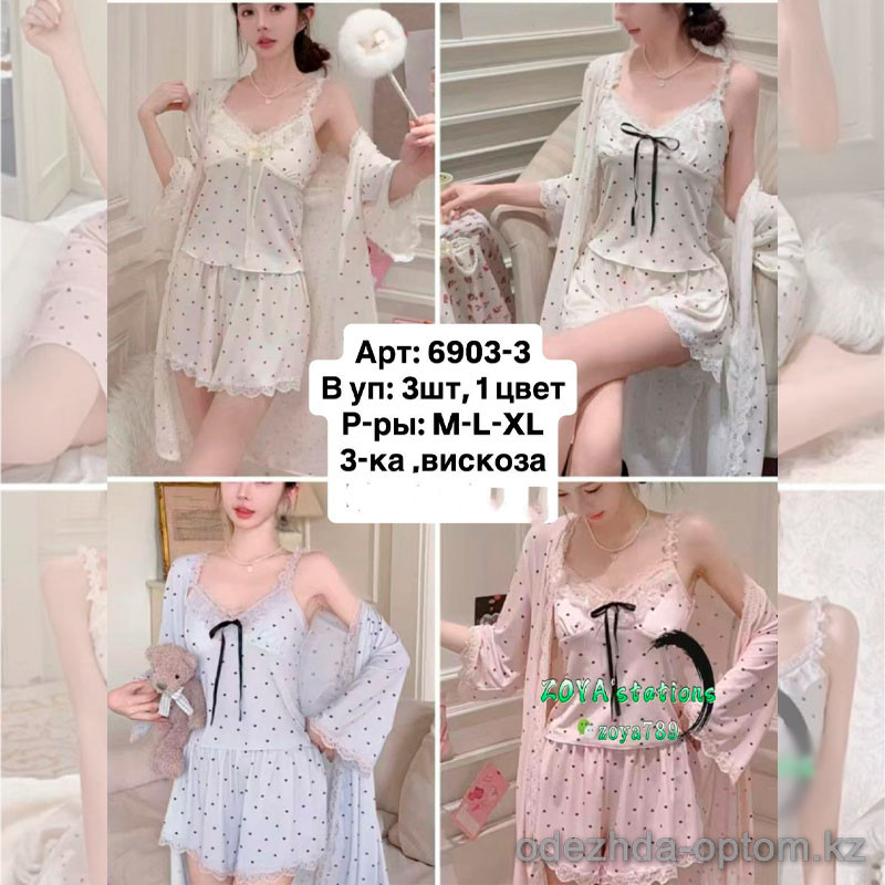 b6-6903-3-1 Комплект женской одежды для сна 3в1: халат, майка и шорты, M-XL, 1 пачка (3 шт)