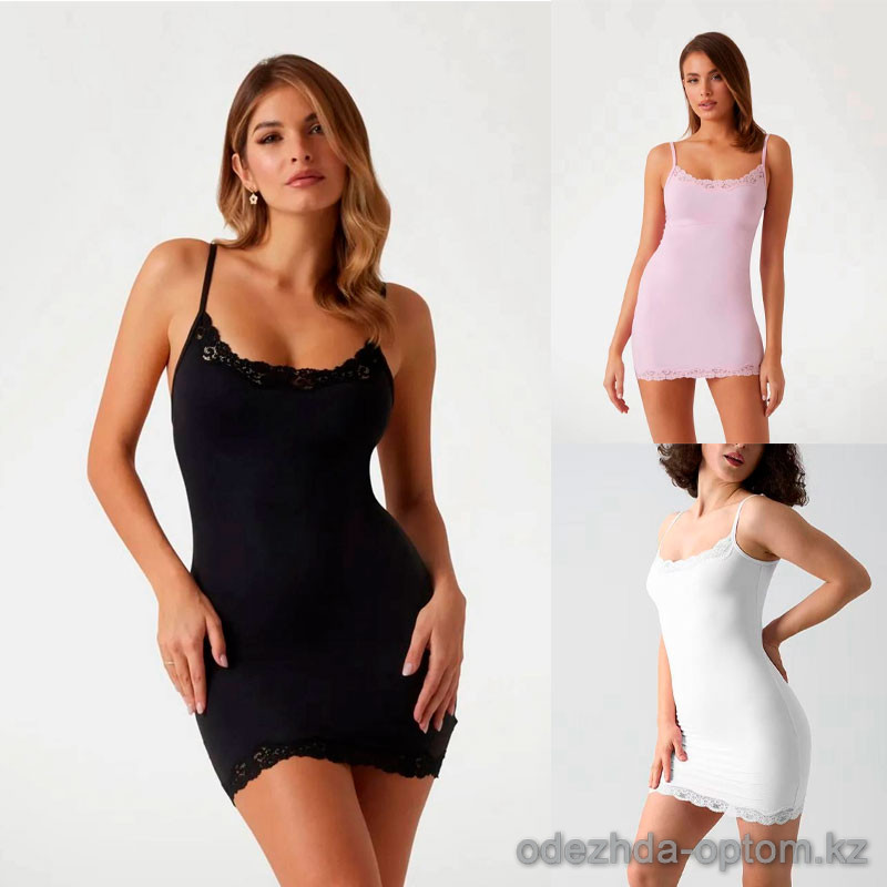 d7-1306 Сорочка женская однотонная на бретельках, S-XL, 1 пачка (4 шт)