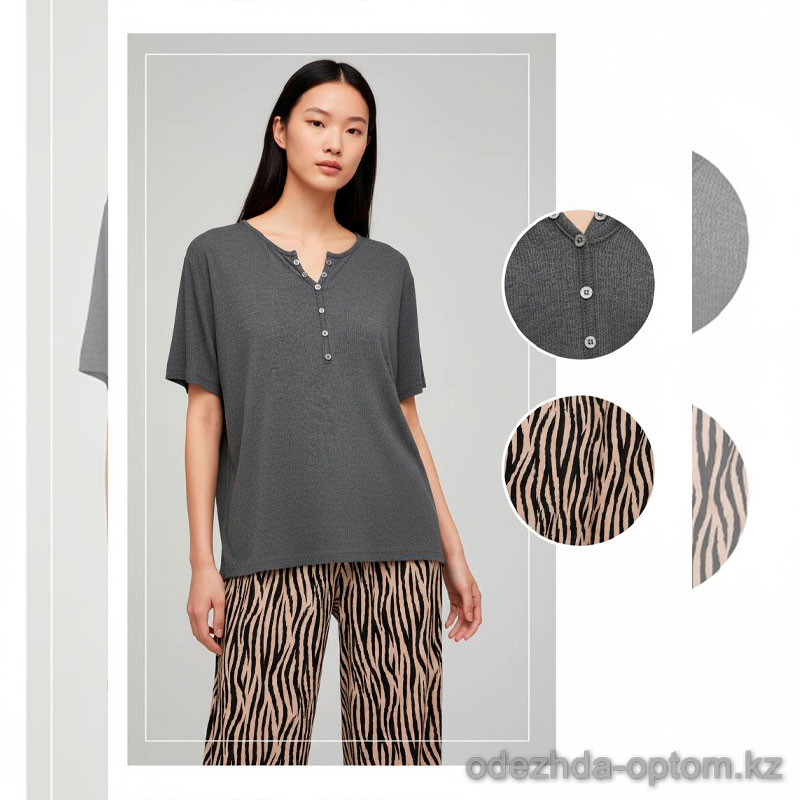 d7-T1179 Комплект женской пижамы: футболка и штаны, стандарт (44-48), 1 пачка (2 шт)