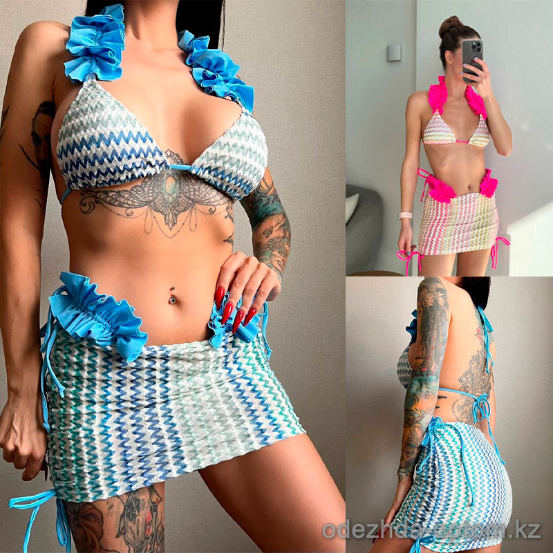 b15-03478 Купальник женский раздельный в комплекте с юбкой, S-L, 1 пачка (3 шт)
