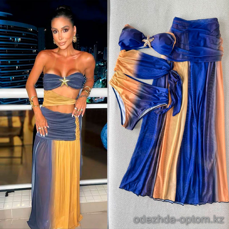 b15-373 Купальник женский слитный в комплекте с юбкой, S-L, 1 пачка (3 шт)