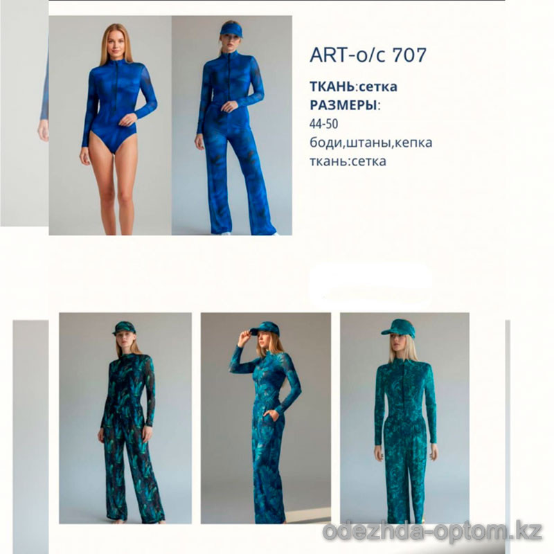 z4-O-C707-1 Пляжный женский комплект: боди, кепка и штаны, 44-50, 1 пачка (4 шт)