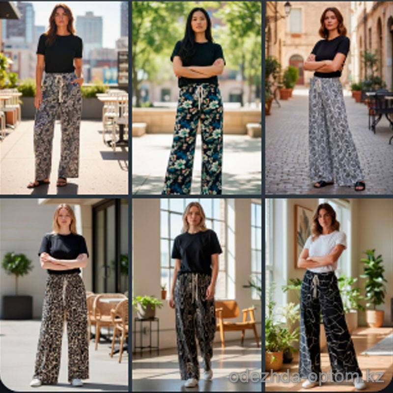 k2-B614 Штаны женские с принтом, 1 пачка (6 шт)