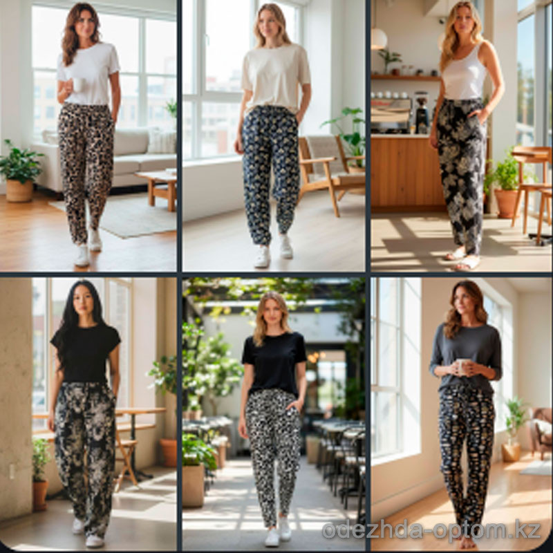 k2-B616 Штаны женские с принтом, 1 пачка (6 шт)