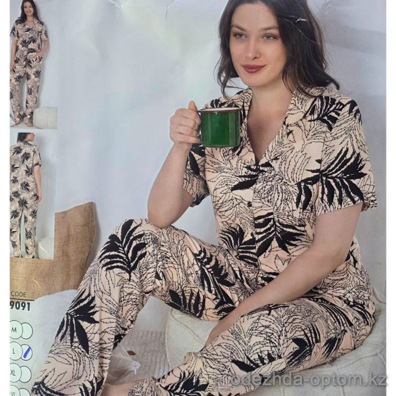 b4-19091 Cotpark Комплект женской одежды: рубашка и штаны, M-2XL, 1 пачка (4 шт)